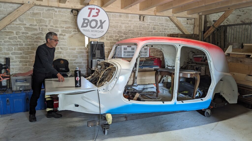 Cette auto historique est une 11B de 1953 qui avec sa « soeur » Cambouis a participé au Tour du Monde en Traction de 1988 a 1990 sur 100.000 km à travers 35 pays. Puis elle a participé à la traversée de l’Australie en 1998, à la traversée des USA en 2002, à la course du Monte Carlo Historique de 2004 etc… Après une hibernation de 20 ans, elle a été entièrement démontée et a vu sa coque remise en état en 2024. Depuis chacun de ses organes mécaniques a été refait entièrement à neuf avec l’aide des fournisseurs PAT2D et Regis Degrémont. Au sein de l’expédition Kegresse, elle assurera la mission PHOTO pour produire les meilleurs iconographies et reconstitutions historiques de clichés d’époque. Le pilote sera Eric Massiet, accompagné du photographe Arthur Bonnin.