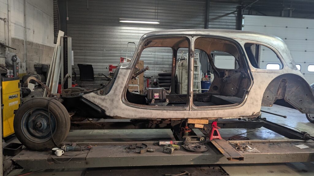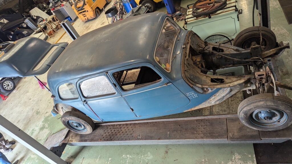 Philéas est ce qu’on appelle une Traction-Avant dans son « jus d’origine » que Thibaut a ressorti de son hangar pour lui attribuer la mission BIVOUAC. Avec sa remorque cantinière, cette 11 cv commerciale sera en charge d’organiser le bivouac du groupe avec transport des vivres, frigo, couchages, tentes supplémentaires etc.. Cette voiture sans doute dirigée initialement vers une lente mort dans l’oubli est actuellement ressuscitée par Thibaut qui s’est lancé dans un impressionnant chantier de reconstruction et rénovation. Ce qui démontre que même après 70 ans d’existence, une Traction-Avant Citroën peut repartir sur les routes et pistes du monde avec une cure de jouvence bien menée. Cela lui génère un bilan carbone global exceptionnellement positif. Elle arborera sa nouvelle couleur jaune Kegresse en octobre 2025.