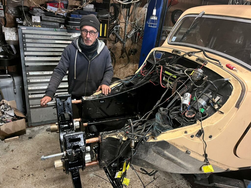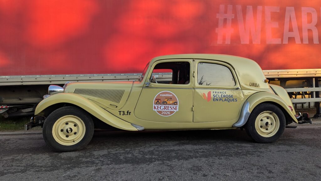 URBA est une 11B de 1956 que notre ami Bernard conduit depuis de longues années sur les routes de France et de Navarre. Il a déjà été jusqu’au Cap Nord avec et cette auto a été la première prête pour participer à l’expé KEGRESSE. Elle a été repeinte au printemps dernier chez notre ami Jeff Rosier et c’est l’auto qui nous sert à tester différents accessoires tels que système de chauffage, nouveau concept de levier de vitesse, amortisseurs arrière KONI optimisés, aménagement intérieur, etc… Il ne lui manque plus que sa galerie de toit KEGRESSE sur mesure dont le design spécifique à l’expédition est prêt et dont la série limitée de 5 sera produite à l’automne.
