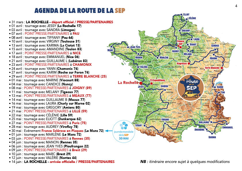 Karima est mannequin, Marc est amiral de la marine Française, Guillaume est prof de chimie, Candice est manager IA textuelle. Leur point commun ? Ils vivent avec la sclérose en plaques (SEP). Après un casting national de 4 mois avec la fondation France Sclérose en plaques, 24 français(e)s ont été sélectionnées pour devenir les héros d’une série de films documentaires : la ROUTE DE LA SEP 2026 sur un tournage événementiel de 10 semaines.
