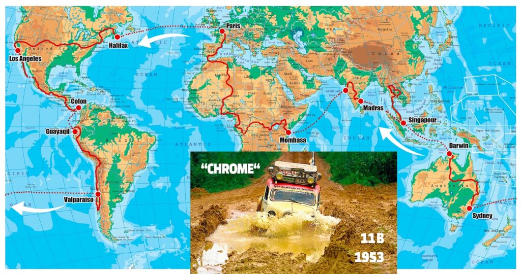 CHROME (véhicule PHOTO) est une Traction-Avant historique de 1953 qui a réalisé un tour du Monde de 18 mois sur 100.000 km entre 1988 et 1990. Elle a aussi participé à une traversée de l’Australie en 2000, des USA en 2002 et au rallye Monté Carlo historique en 2004.
